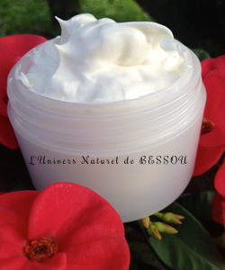 Aujourd’hui, je suis très heureuse de partager avec vous ma « Chantilly de Karité » en anglais « Shealoé » (beurre de karité et aloé-véra ici ). Comme son nom l’indique c’est une crème fouettée à laquelle j’ajoute mon macérât de vanille « maison » (ici) ainsi que d’autres ingrédients nourrissants, fortifiants, hydratants et assouplissants. C’est « mon produit phare » ; je suis accro de cette crème qui fait des merveilles par son côté multi-usages. Elle est particulièrement efficace pour les peaux et cheveux secs ;  je l’utilise principalement pour réaliser les vanilles de ma fille, mais aussi pour toute la famille en application corporelle.