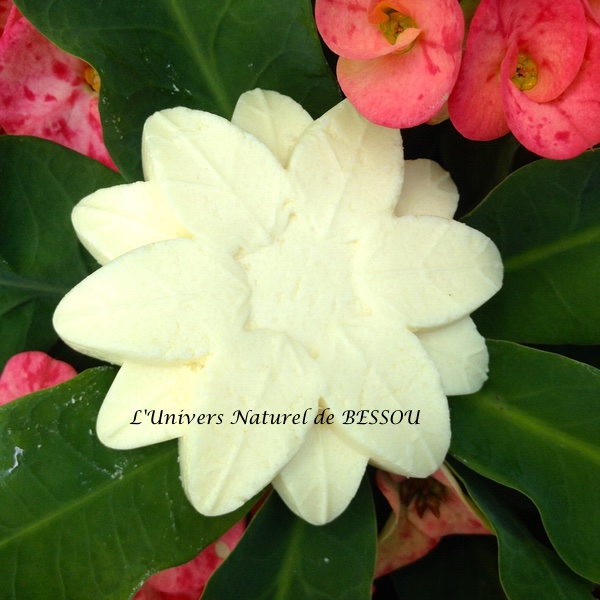 Aujourd’hui, je vous parle de mon pain dermatologique soufré « Fleur de Savon Sofaïa » que j’ai réalisé pour le soin du visage de mes deux adolescents et qui s’accompagne aussi d’une crème matifiante et purifiante de ma gamme « Sofaïa » (ici). C’est un pain anti-bactérien et anti-acné qui aide à éliminer les impuretés et à réguler les sécrétions de sébum, adapté principalement pour les peaux à problèmes et acnéiques.